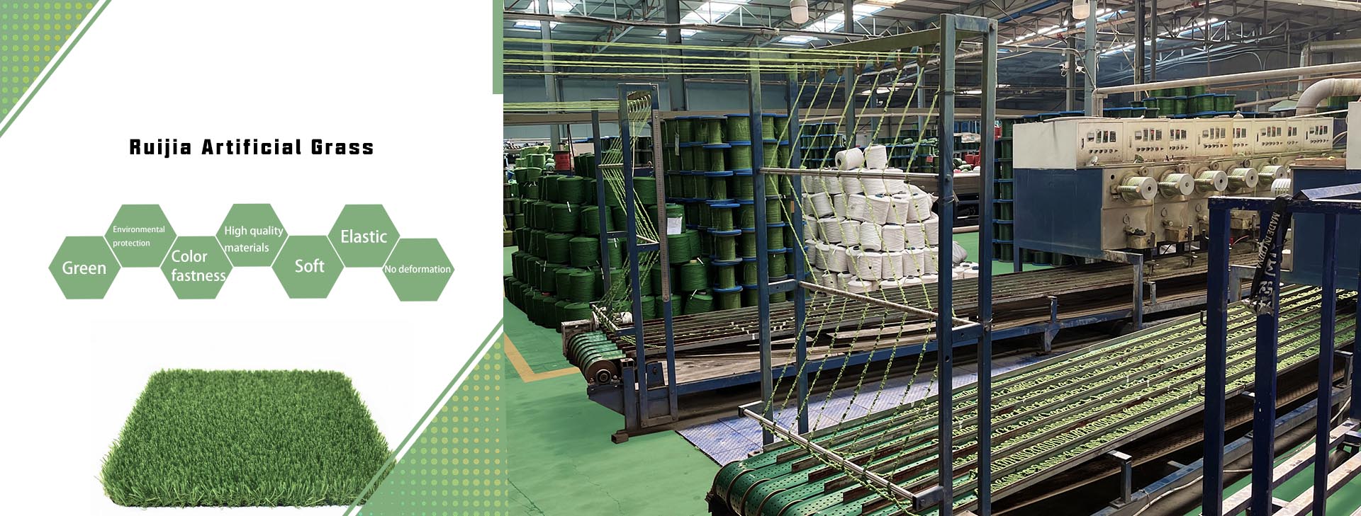 Ruijia artificial turf factory was established in 2008. It is a professional manufacturer specializing in R&D, production and sales of various sports turf, leisure turf, landscape turf and the production of plastic turf silk and other engineering turf.